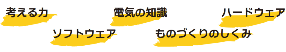 「ものづくりDr.Kidskeyアカデミー」では「ものづくり」は、ハードウエアとソフトウエアの双方を学ぶことと考え、カリキュラムを構築しています。また、「ものづくり」の基礎となる「考え方」や「もののしくみ」の理解であるとも考えています。